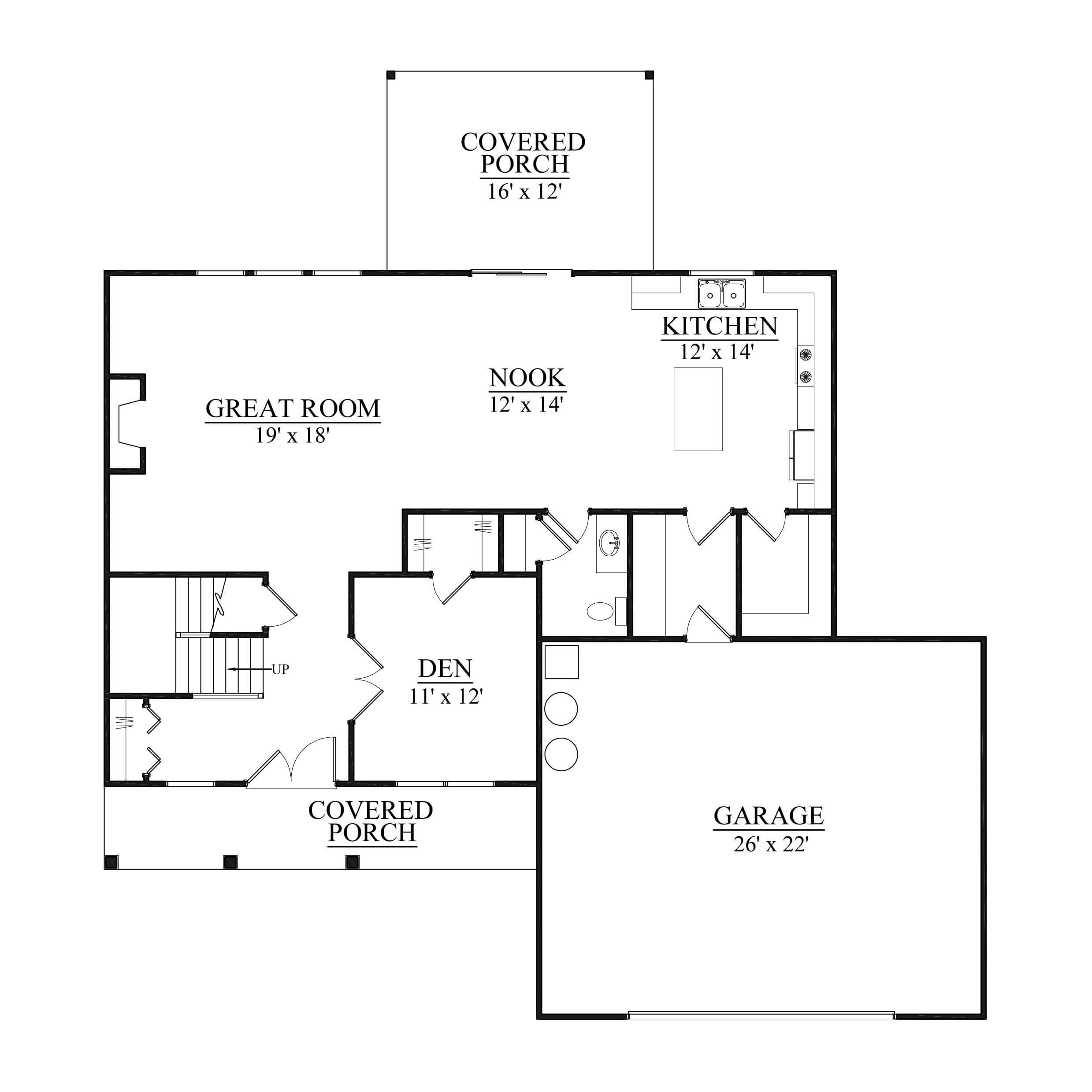 Three car garage, covered porch, mud room