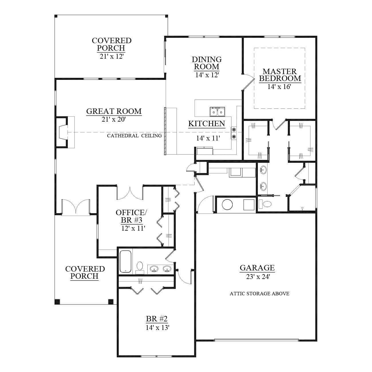 Two car garage, covered porch, mudroom, office, main floor master bedroom
