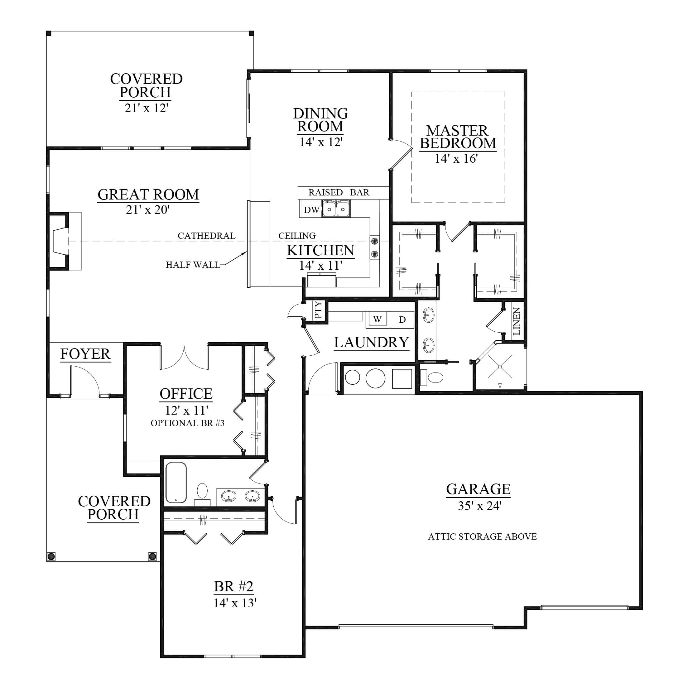 Features: Two car garage, covered porch, office, main floor master bedroom