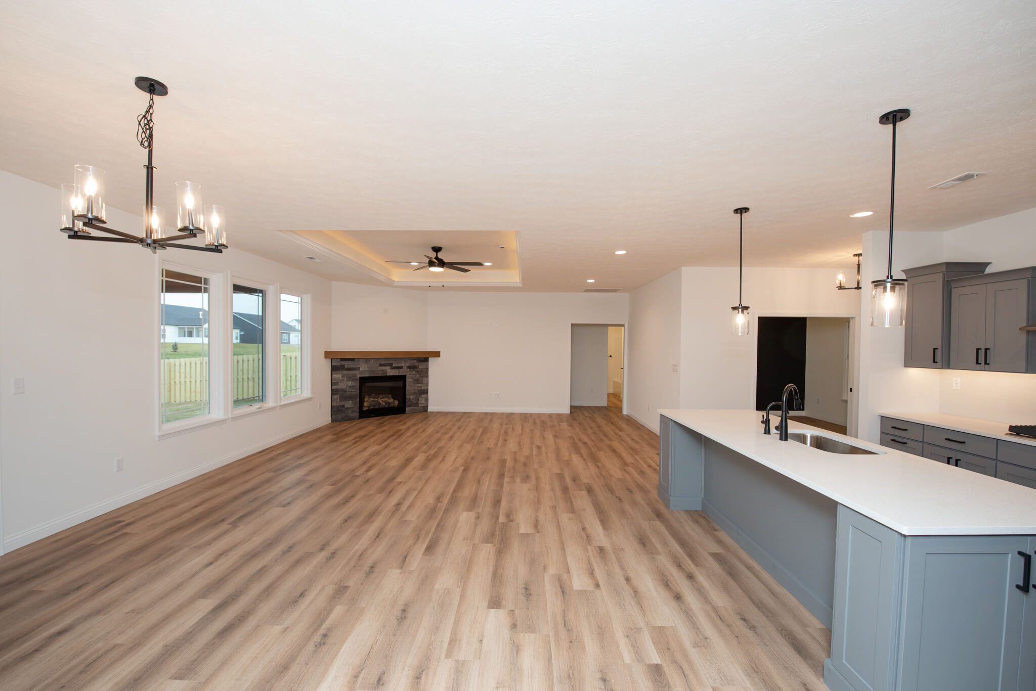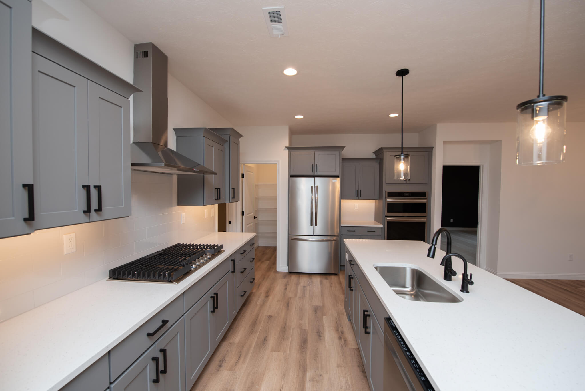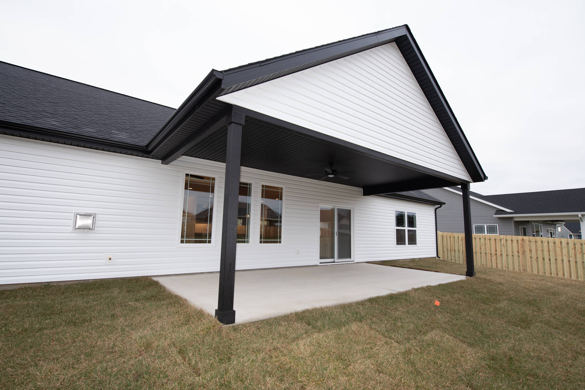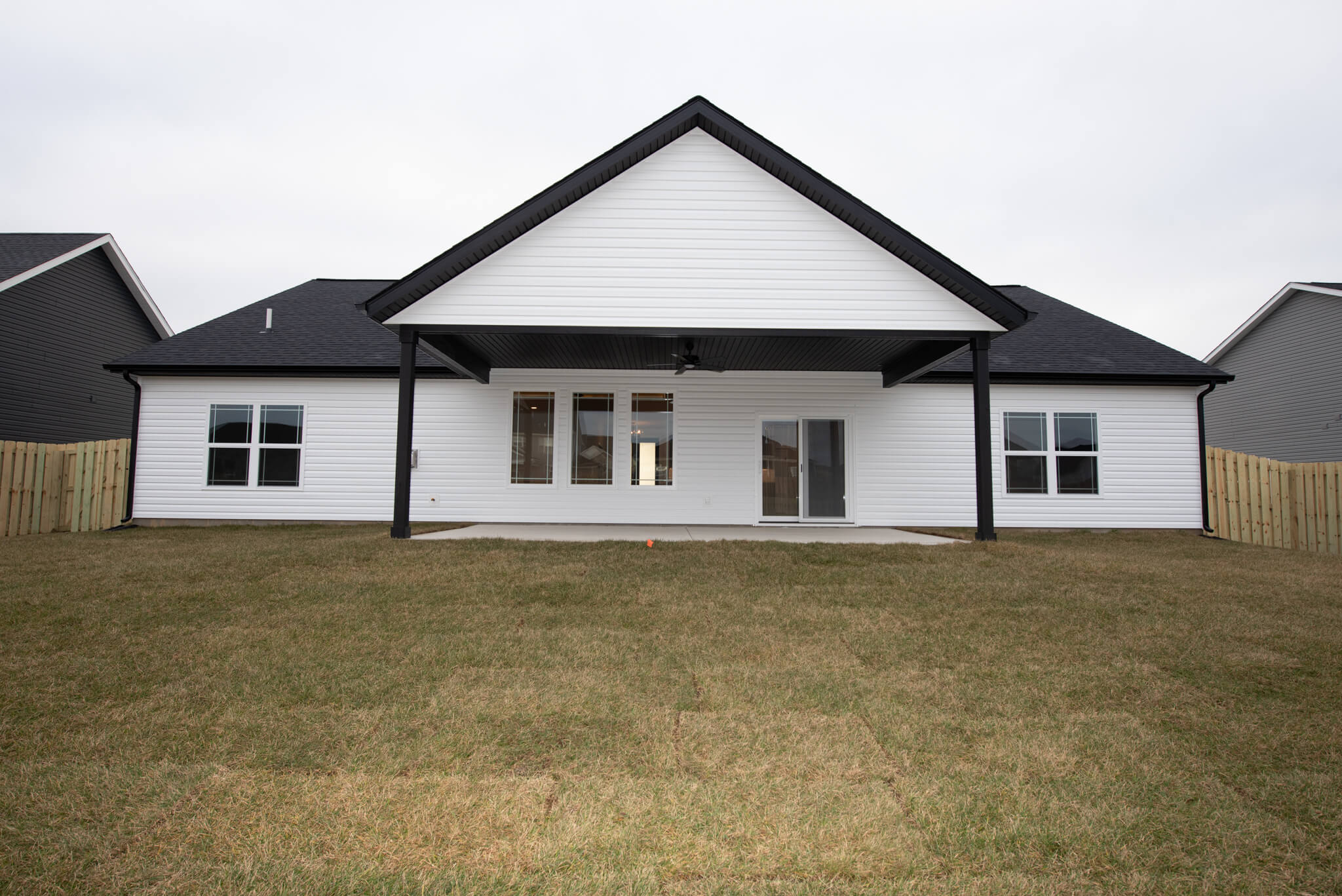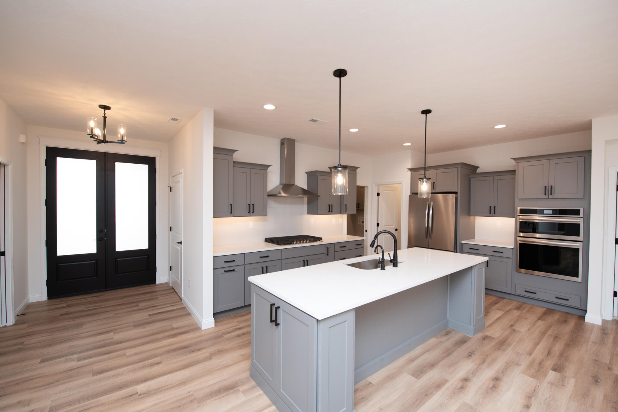 Three car garage, covered porch, mudroom, den, main floor master bedroom, walk-in pantry