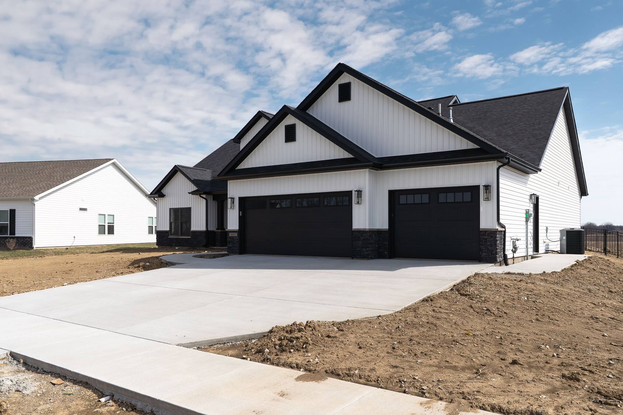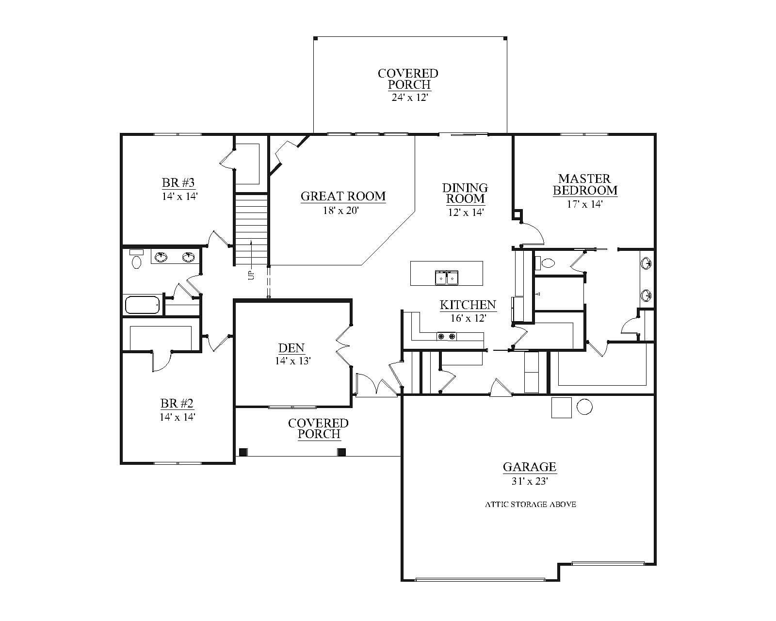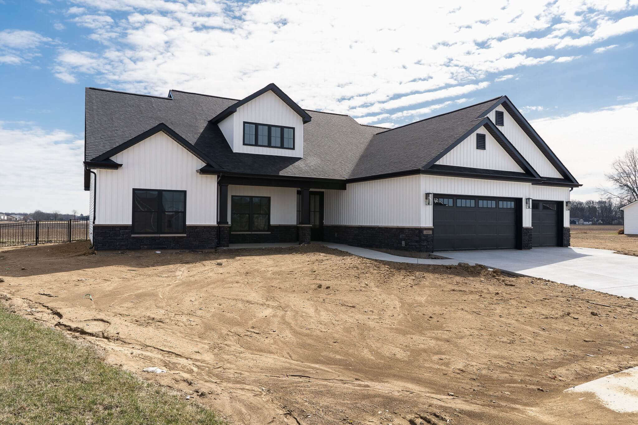 Features: Three car garage, covered porch, mudroom, den, main floor master bedroom, walk-in pantry, 2nd floor family room, storage, and 4th bedroom.