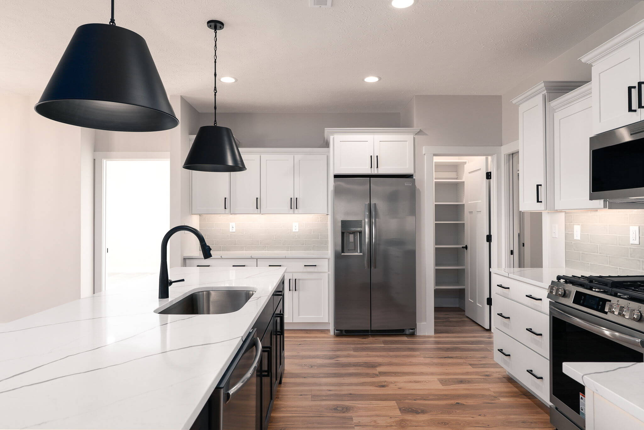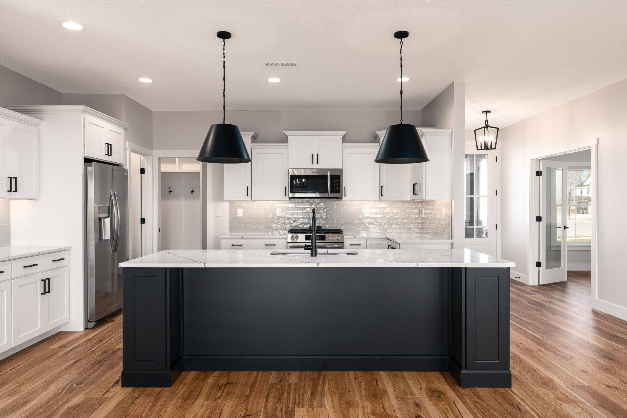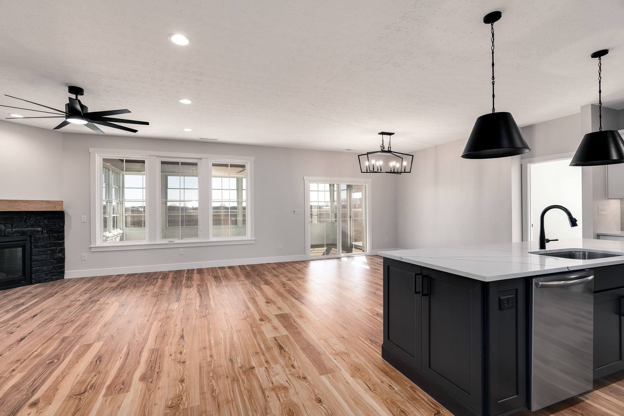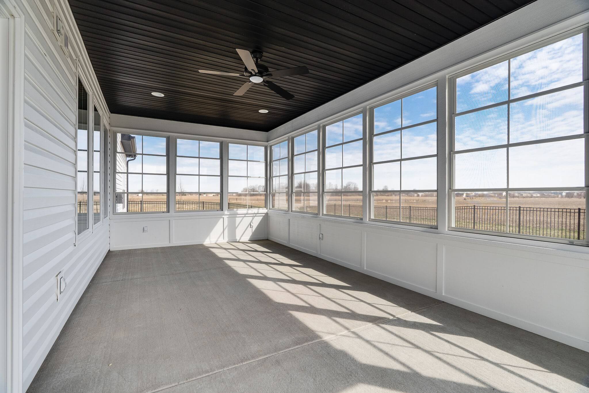 Features: Three car garage, covered porch, mudroom, den, main floor master bedroom, walk-in pantry, 2nd floor family room, storage, and 4th bedroom.