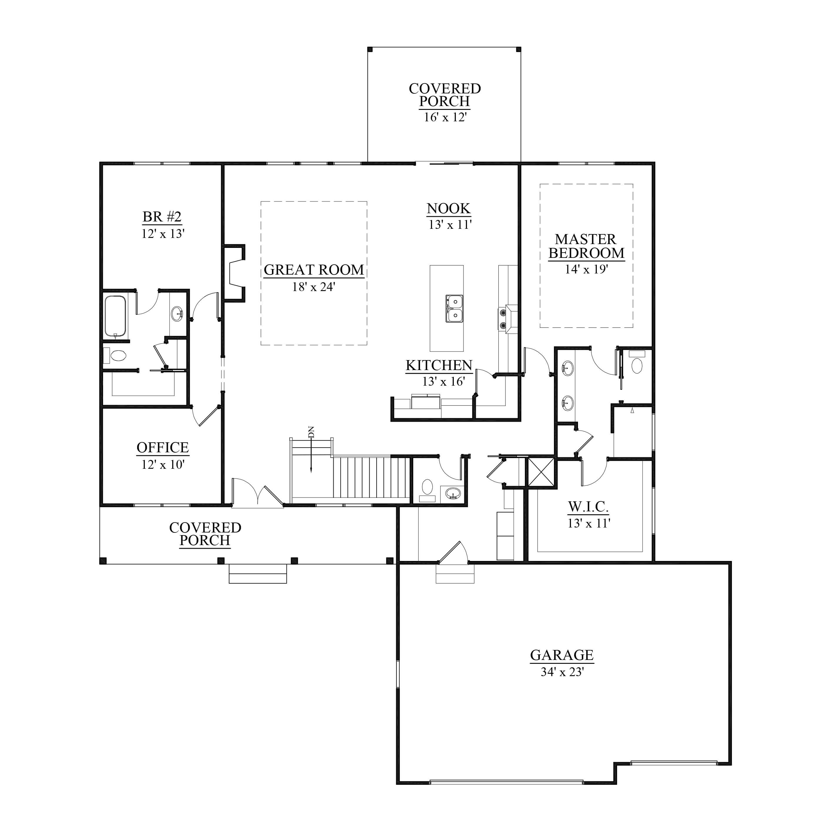 Features: 3 car garage, main floor master bedroom, front and back covered porch, finished basement family room
