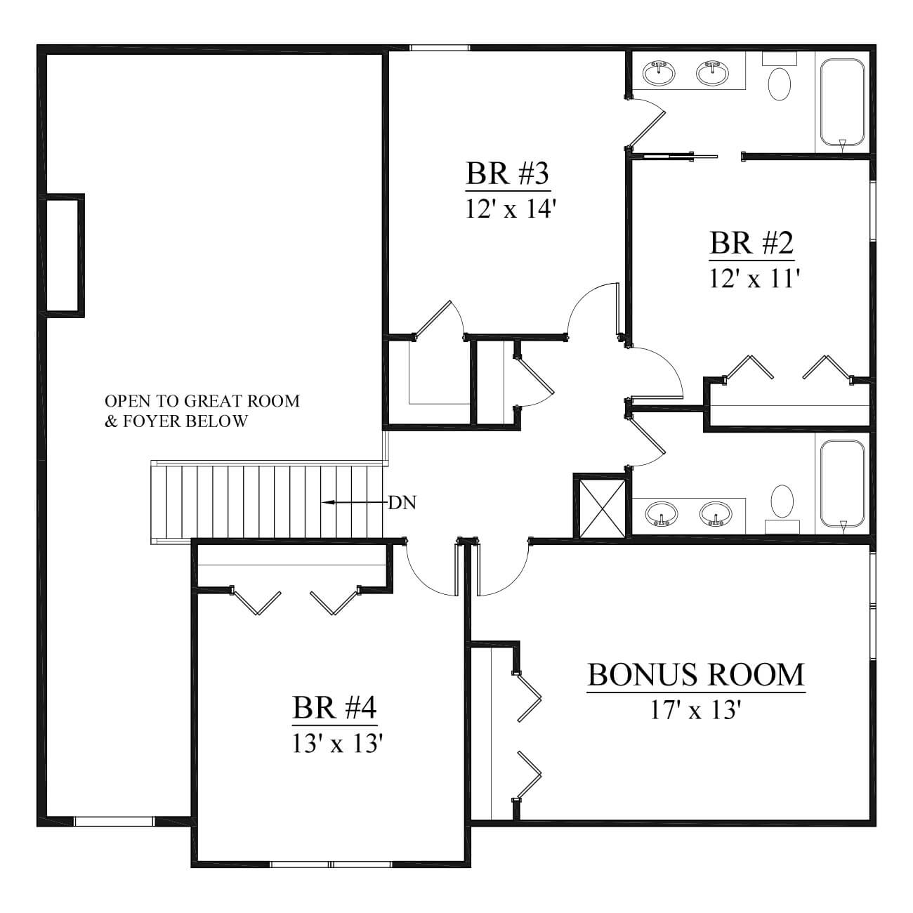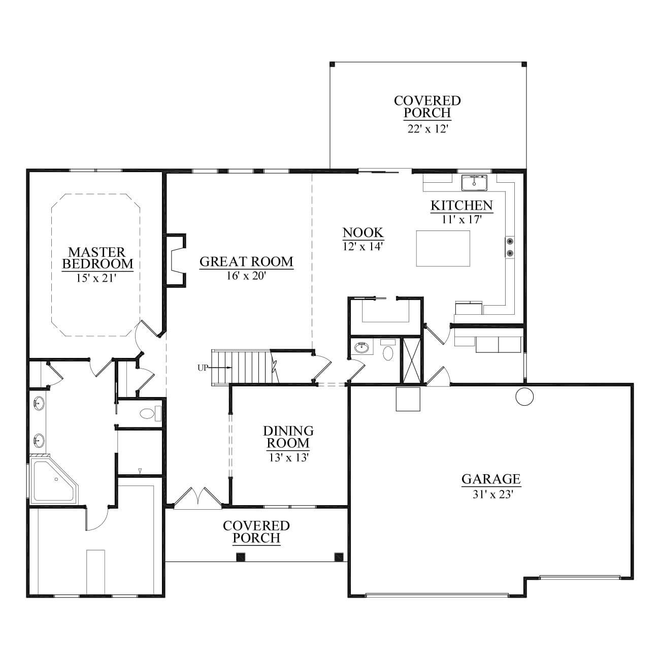 Features: Three car garage, covered porch, bonus room, mudroom, formal dining room, main floor master bedroom, walk-in pantry