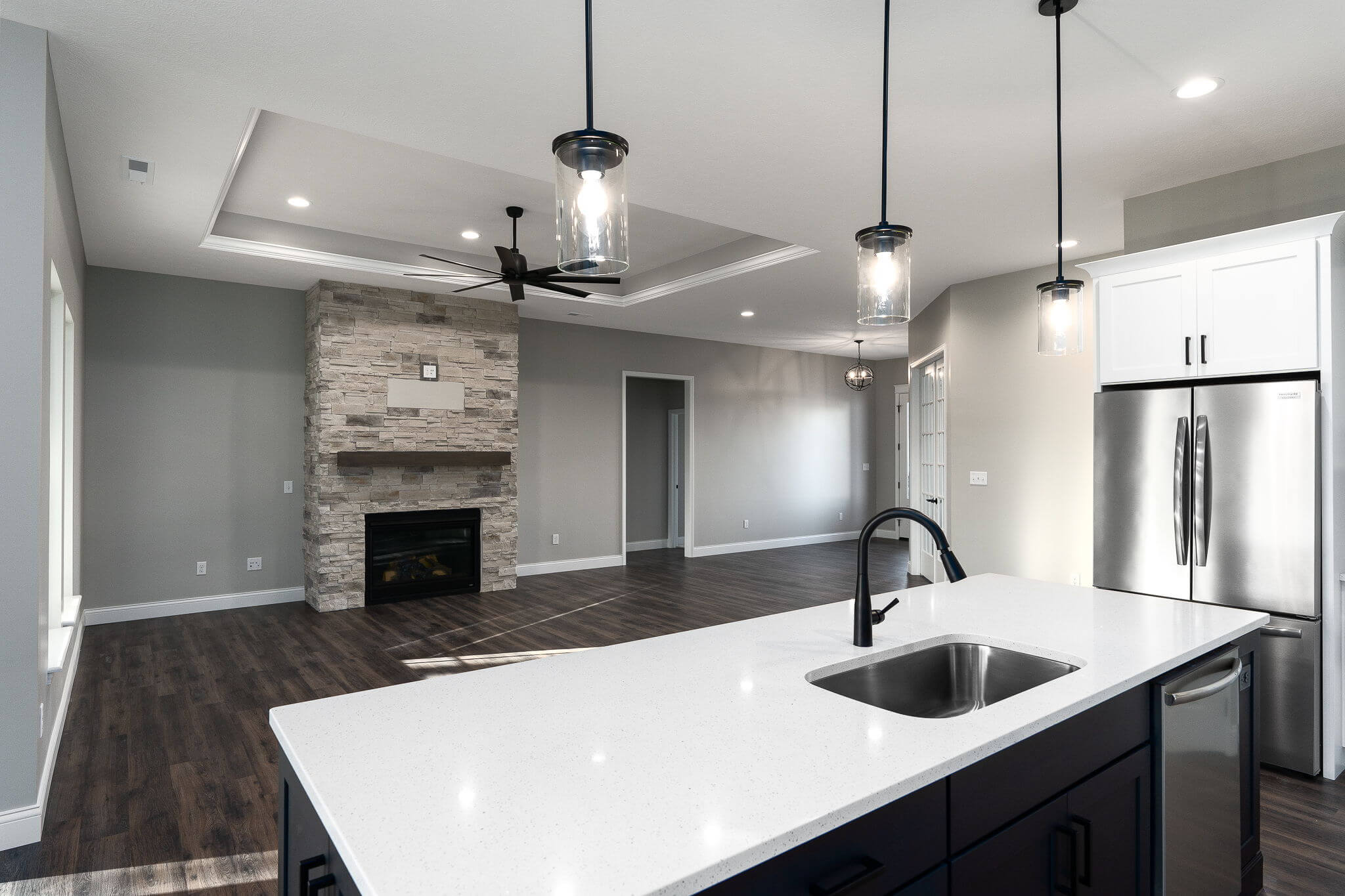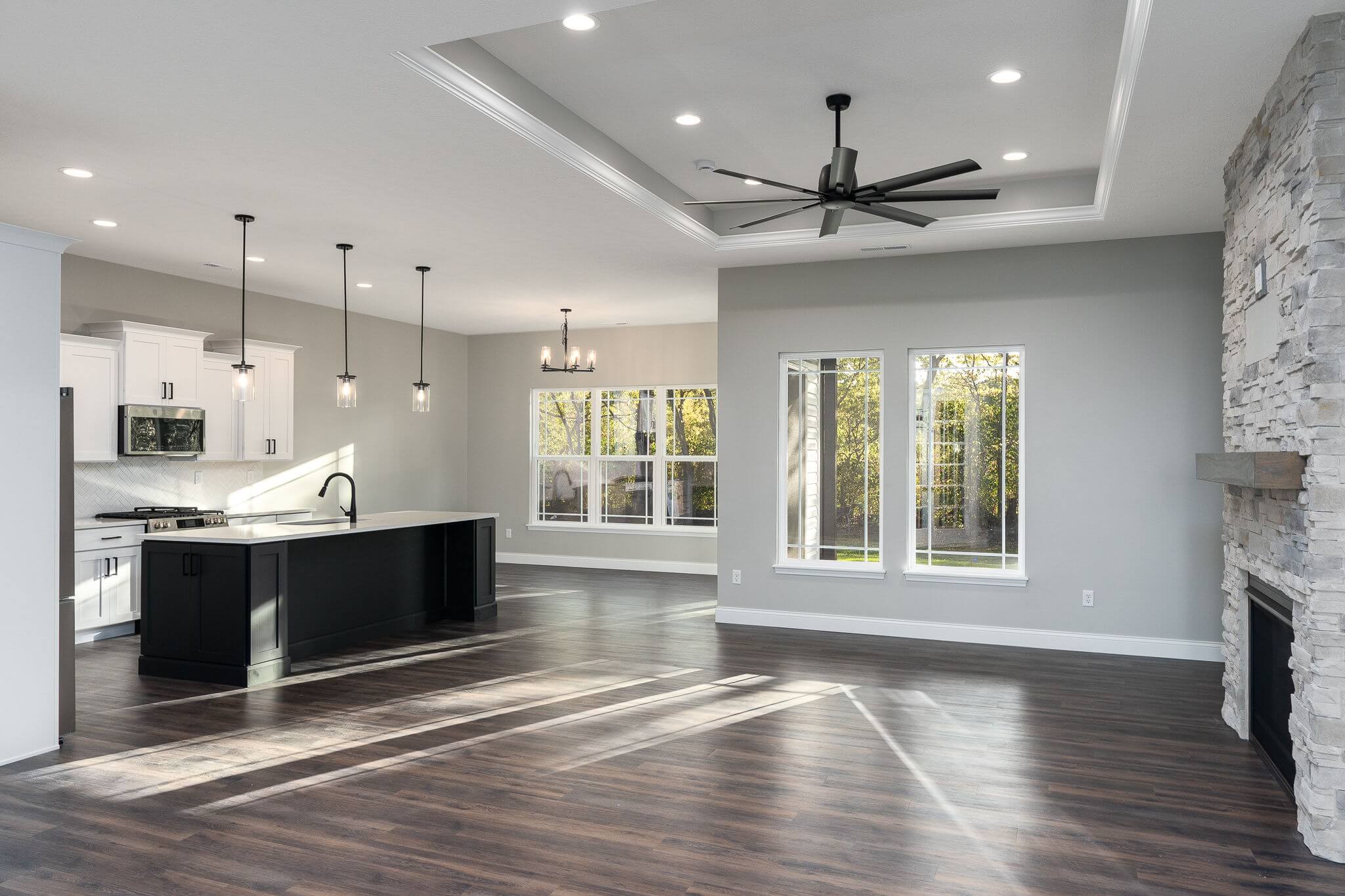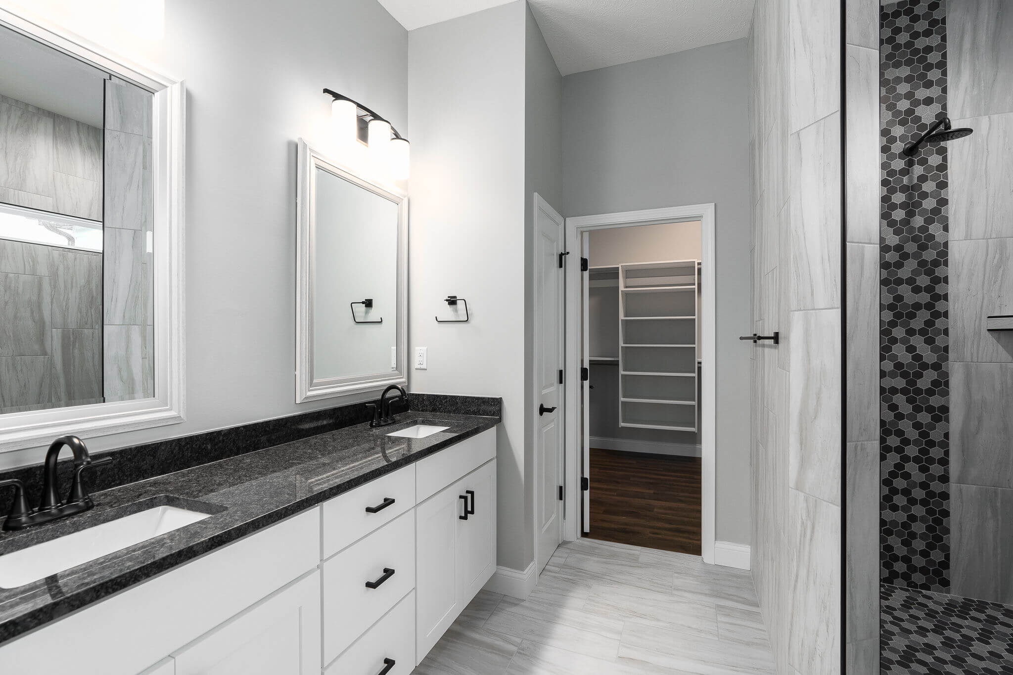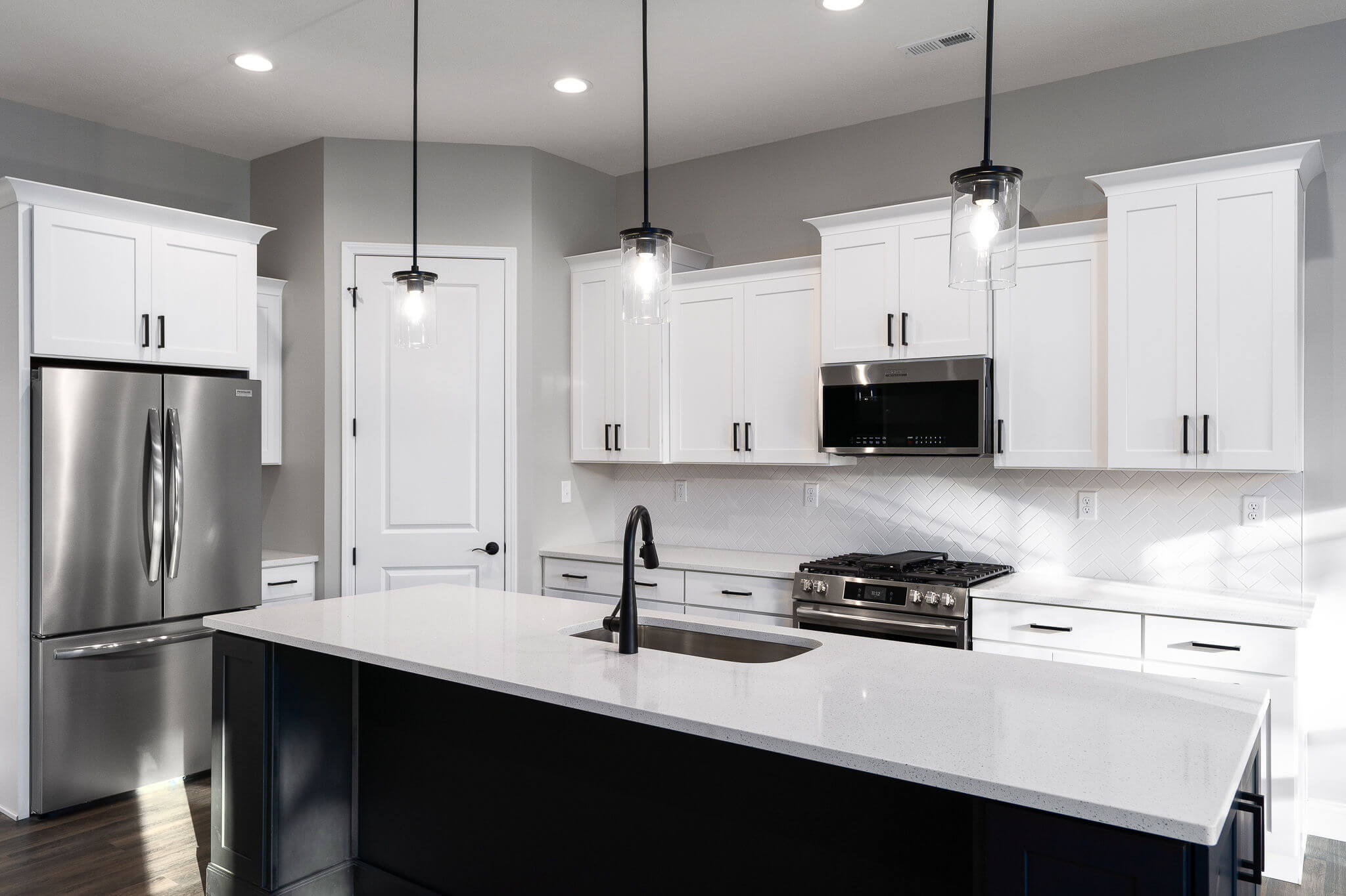 Three car garage, covered porch, mudroom, office, main floor master bedroom, walk-in pantry