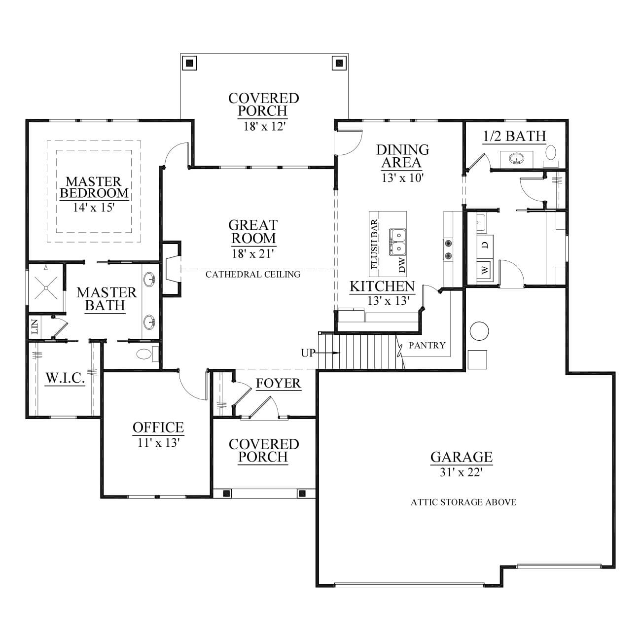 Three car garage, covered porch, loft, mudroom, office, main floor master bedroom, walk-in pantry