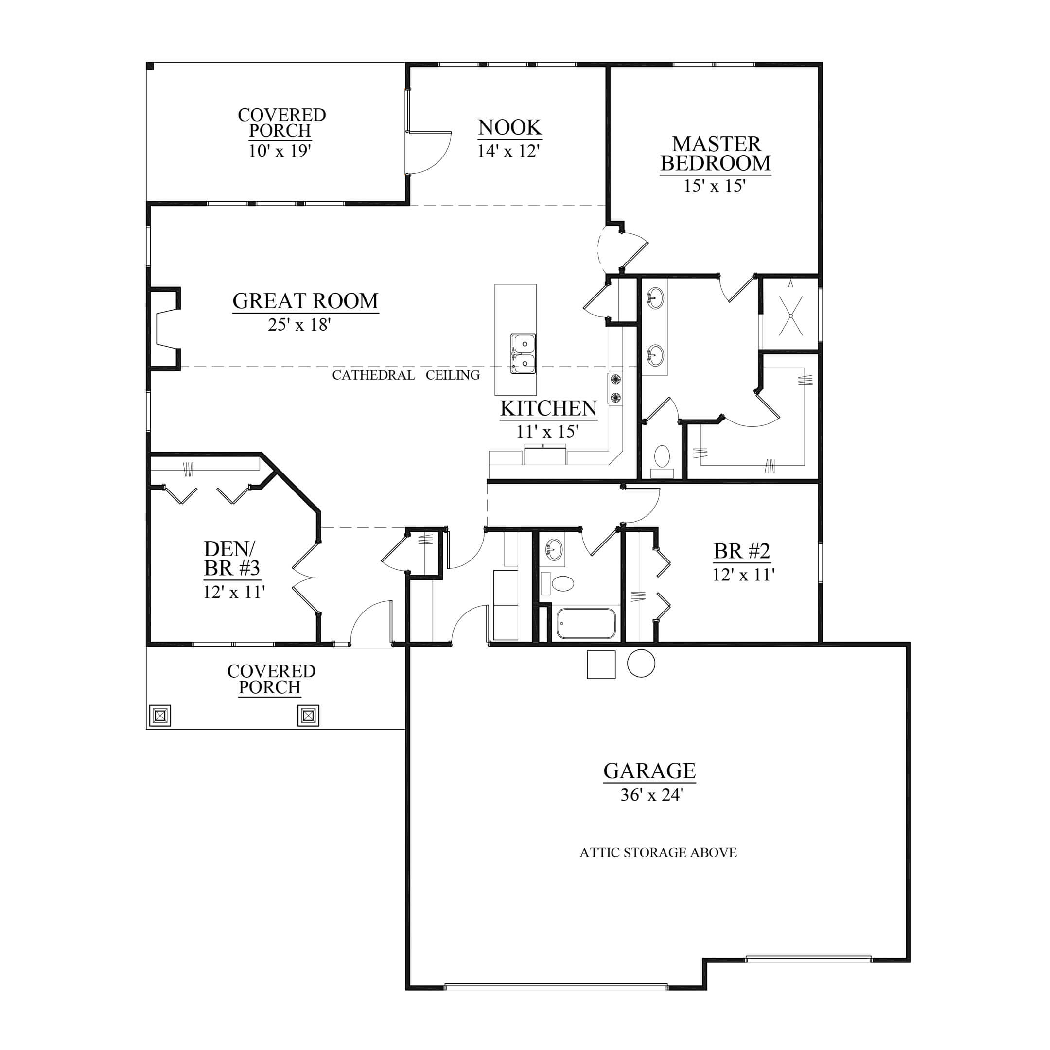 Features: 3 car garage, main level master bedroom, back and front covered porches, 3rd bedroom/den
