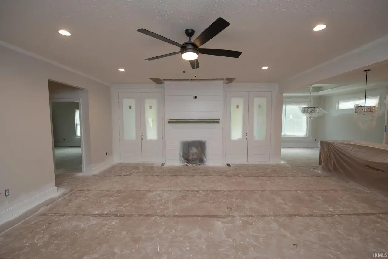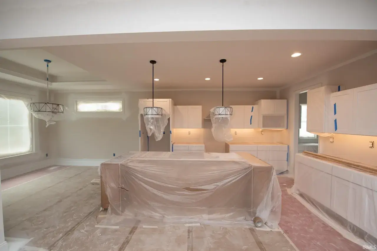 The Evyn model offers an impressive 5, 143 finished square feet of living space with 6 bedrooms, 4.5 baths, a finished basement, and an oversized 3-car garage. The main level showcases open-concept living with an inviting foyer and French-door office that flows into the spacious great room featuring dual glass doors framing a striking double-sided fireplace that opens to a 19x16 covered porch. The chef-inspired kitchen is a true showpiece with custom cabinetry, a massive 9-foot island topped with quartz, stainless steel appliances, tiled backsplash, and an exceptional butlers pantry offering additional cabinetry and a large walk-in pantry. The dining area, enhanced with 10-foot tray ceilings accented by crown molding and lighting, provides a perfect setting for gatherings.